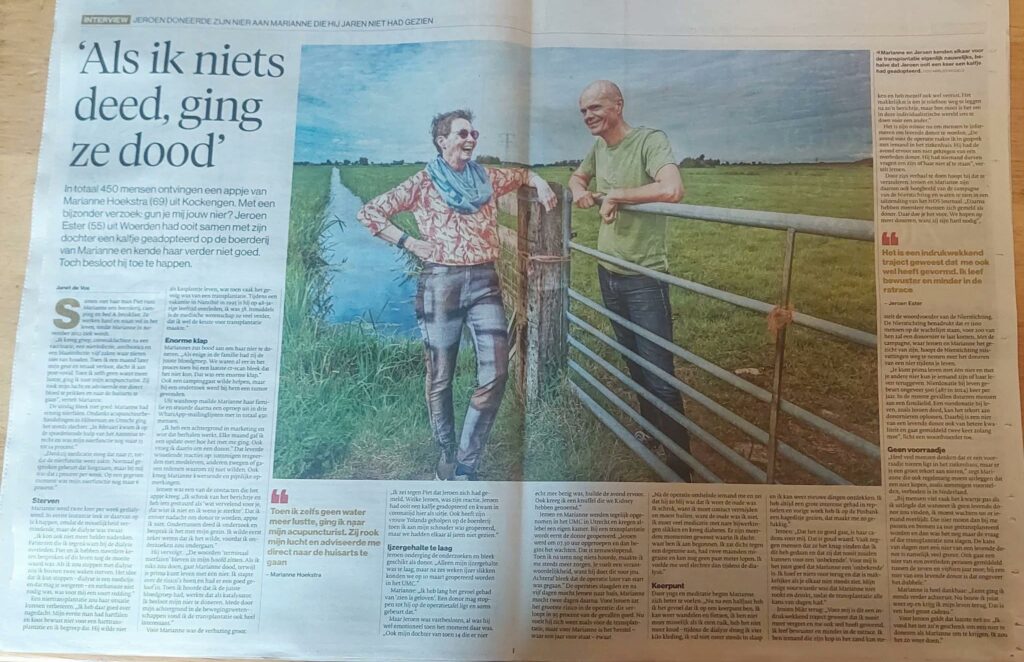 Vandaag (20-09-2025) in de weekendbijlage van AD Groene Hart een mooi verhaal over nierdonatie bij leven.